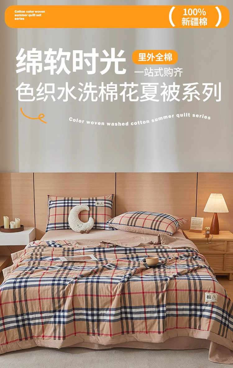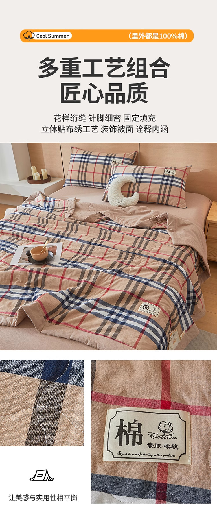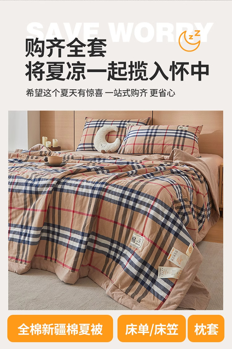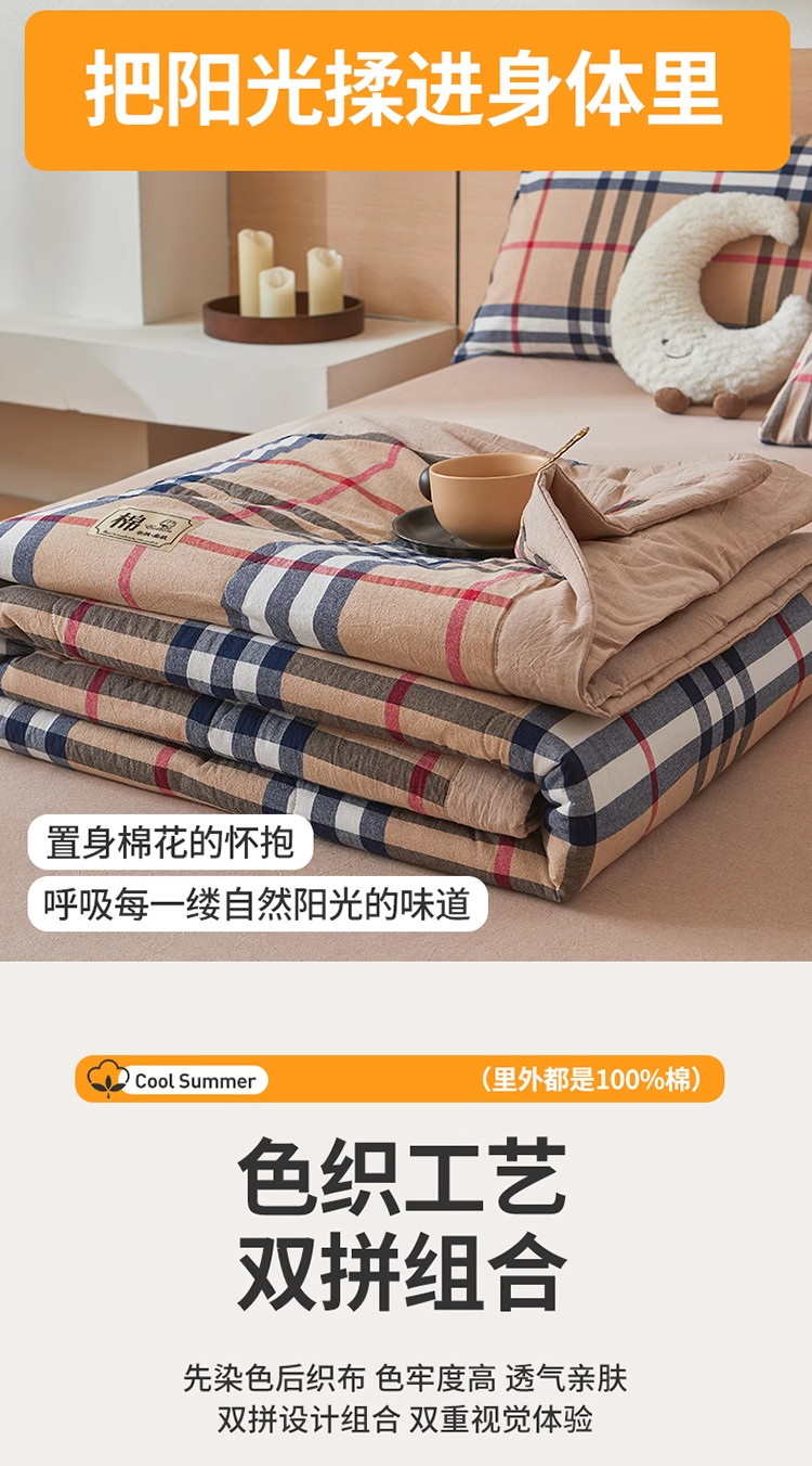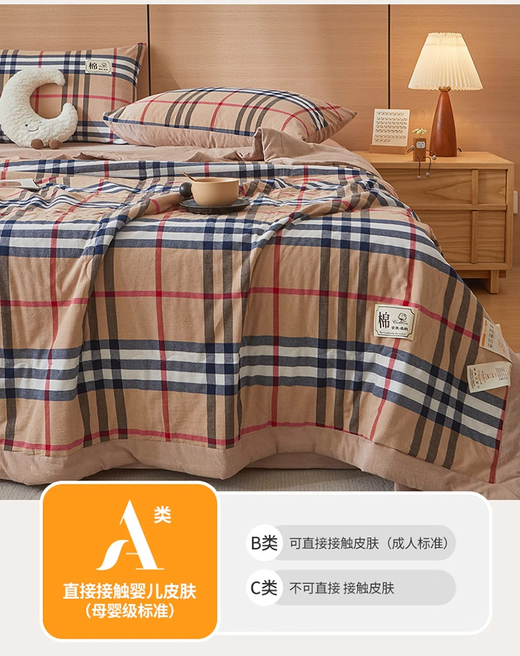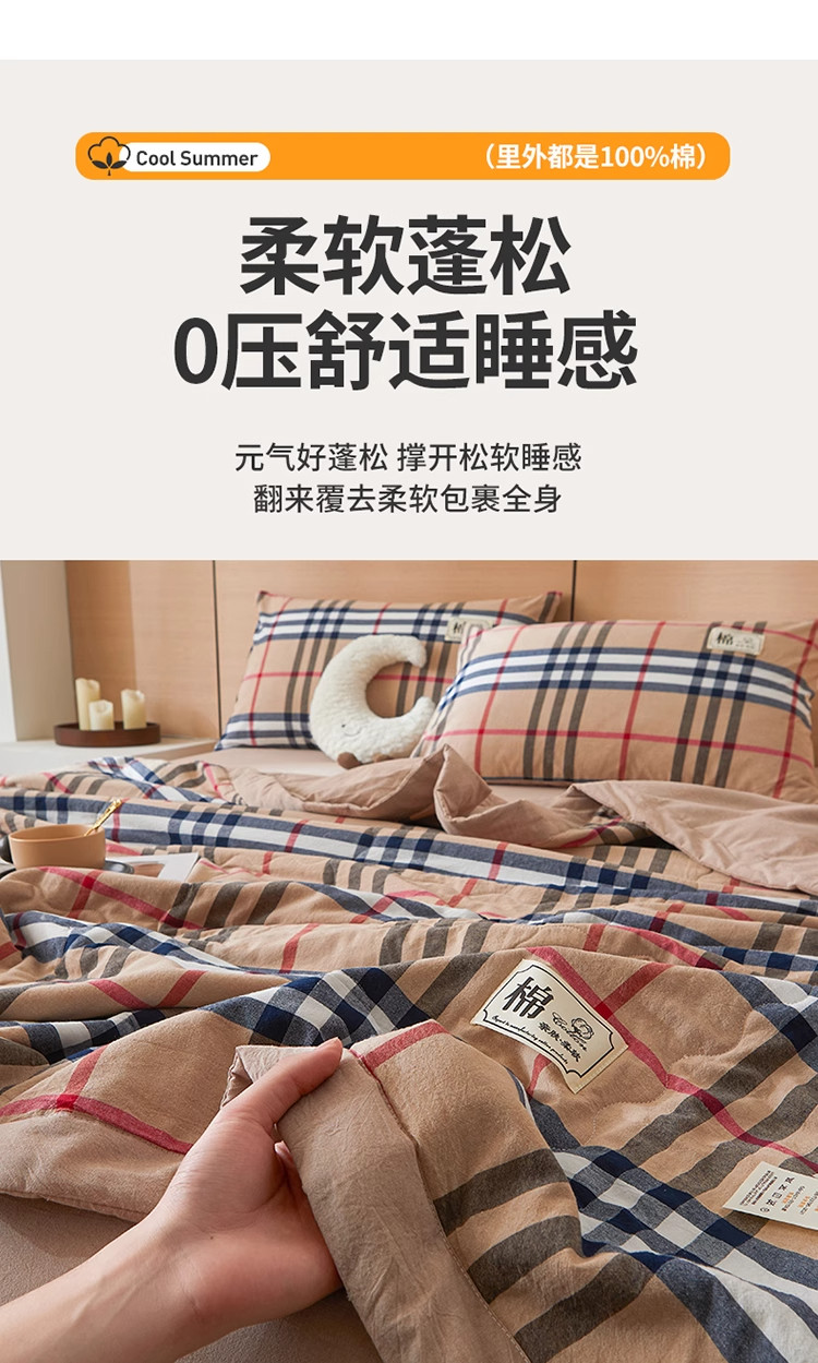 雅鹿A类夏被空调被夏凉被非全棉纯棉可机洗学生宿舍双层纱薄被子